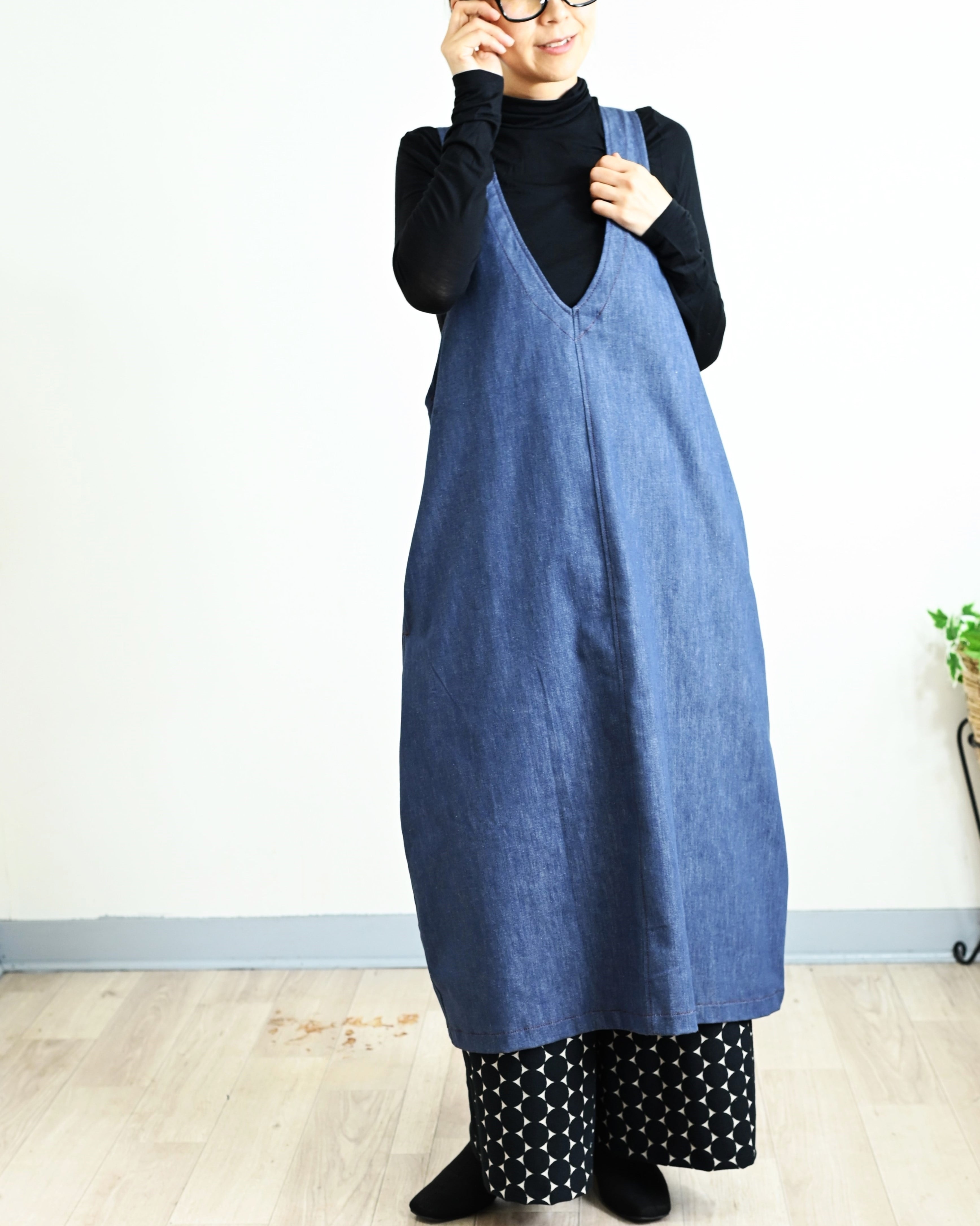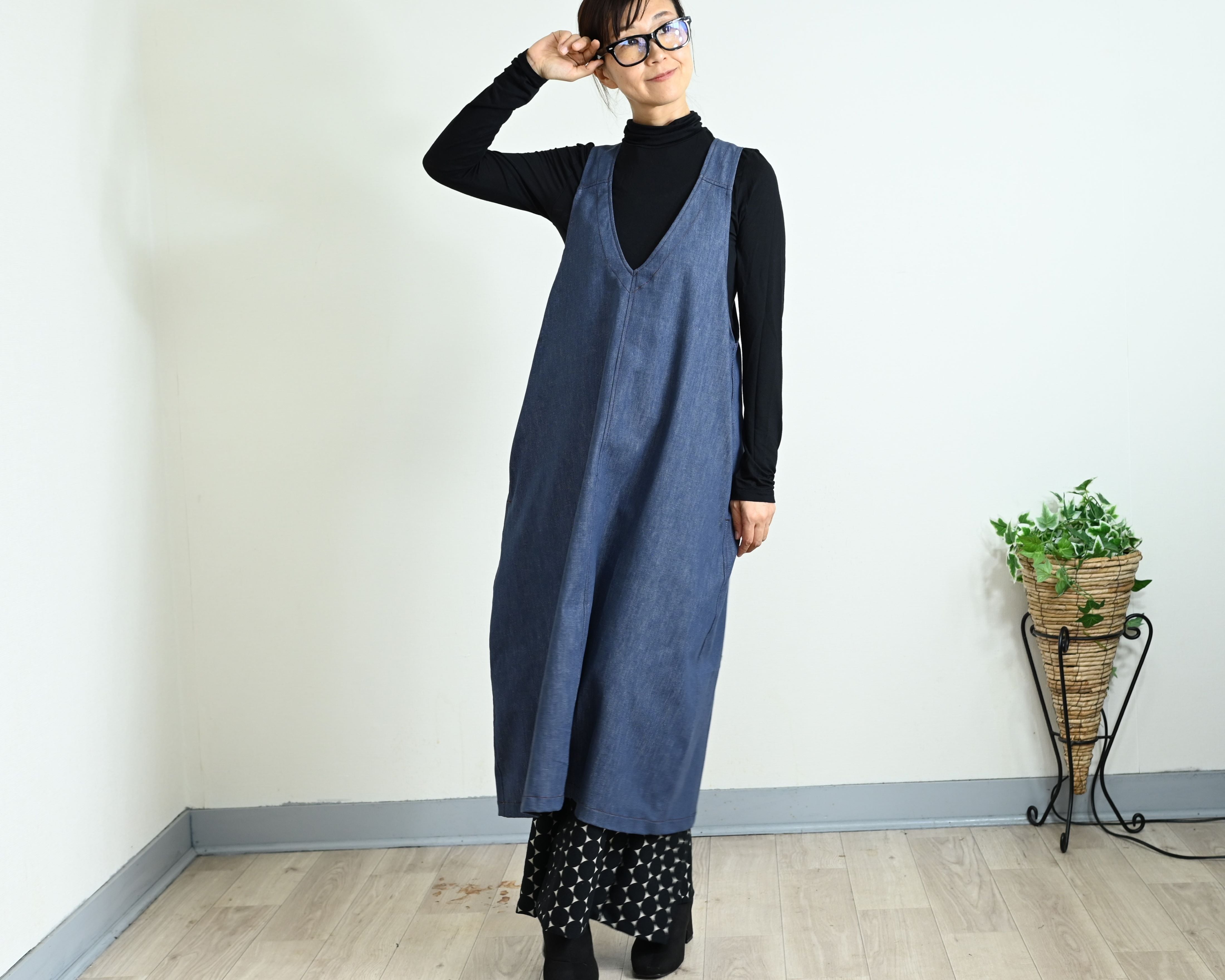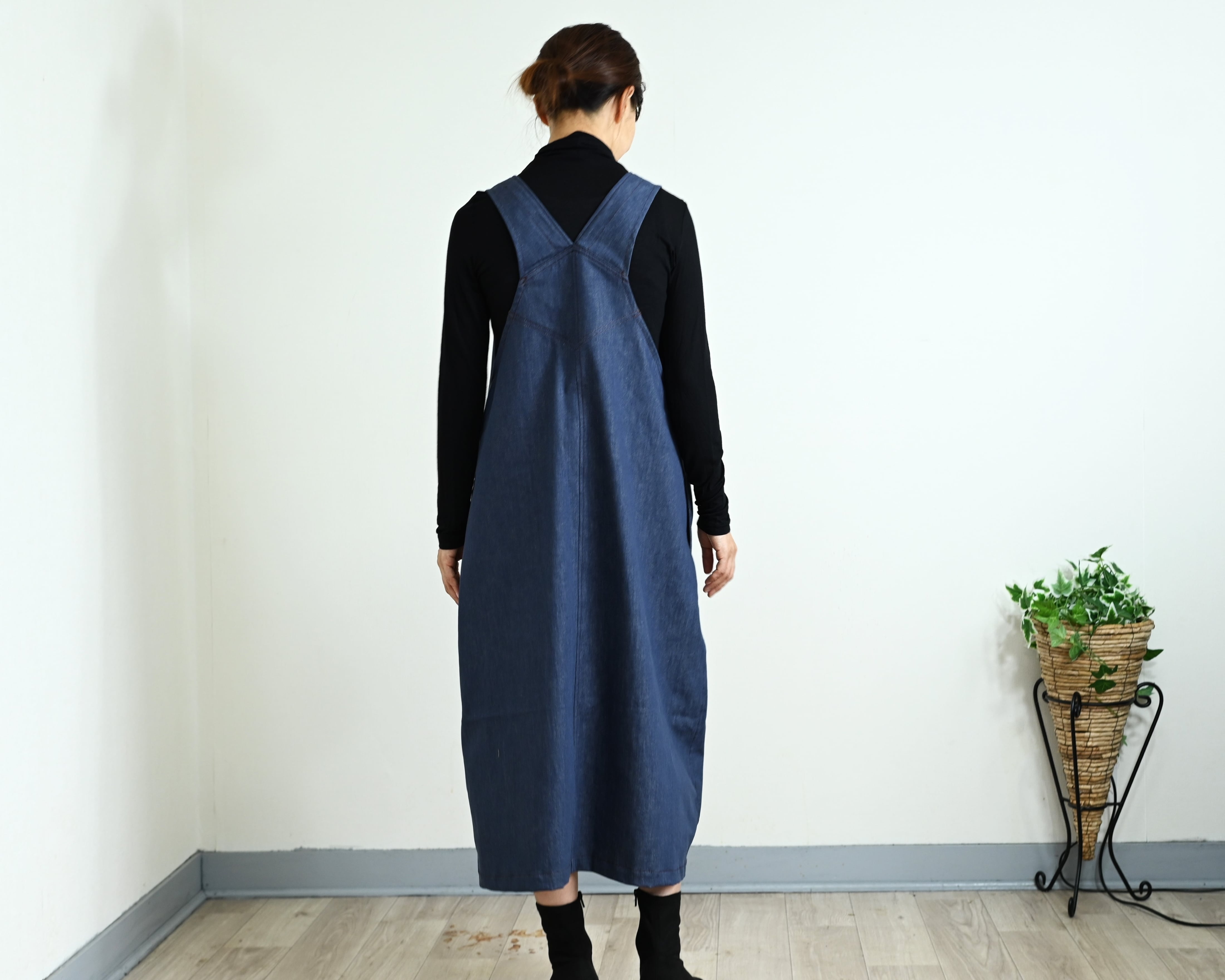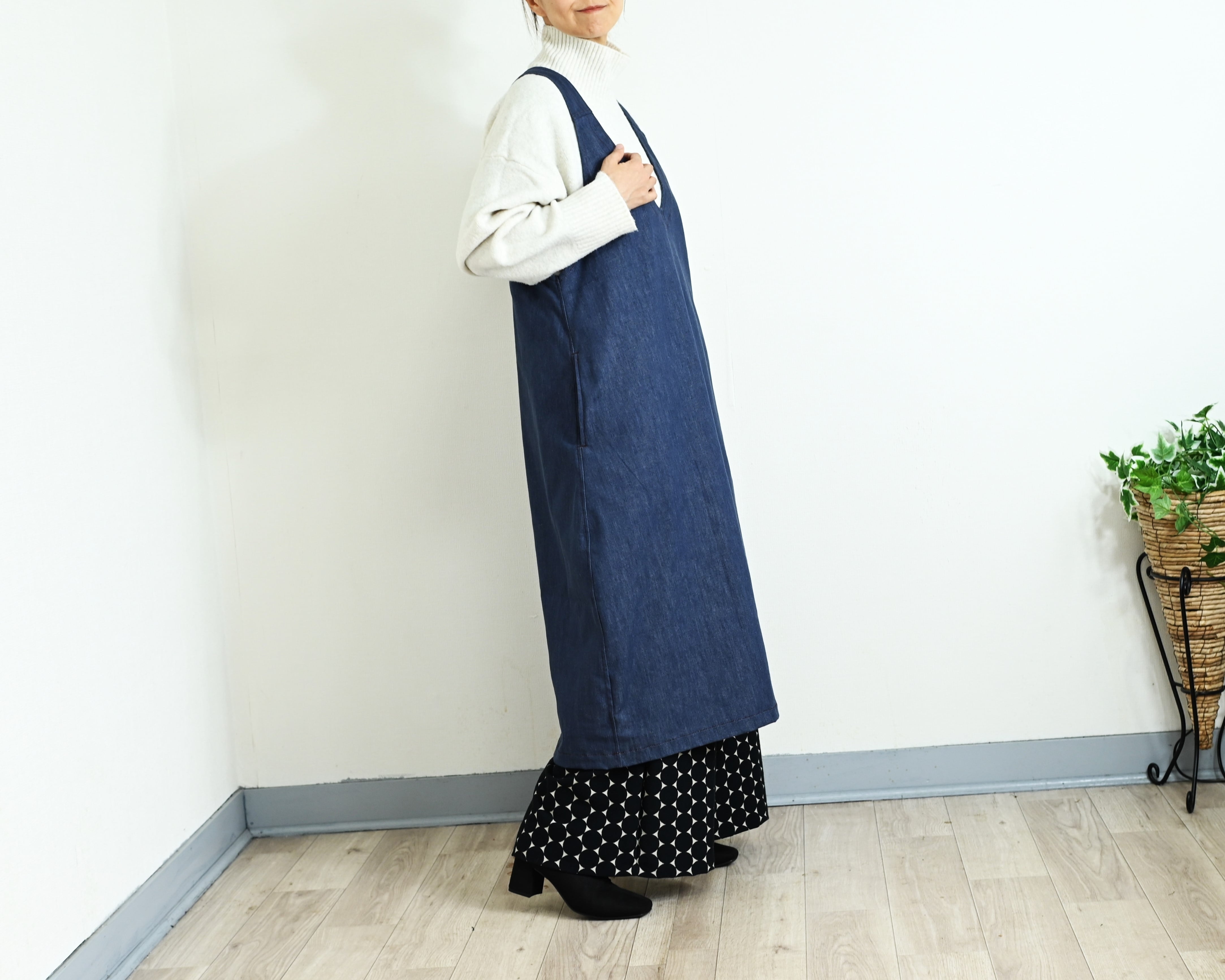 ENANAは、軽くてしなやかな8オンスデニムで長くご愛用できるジャンパースカートをお作りしました。