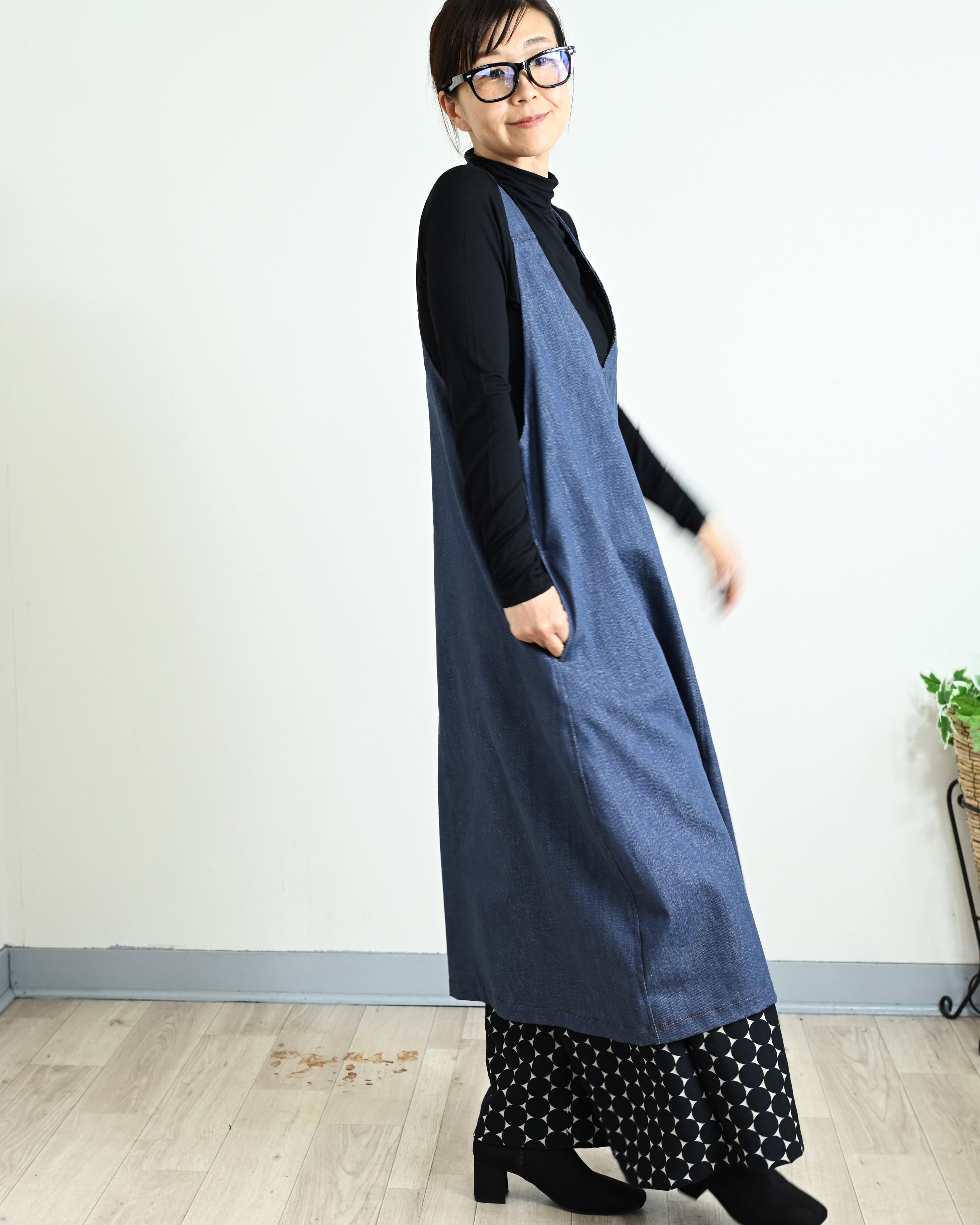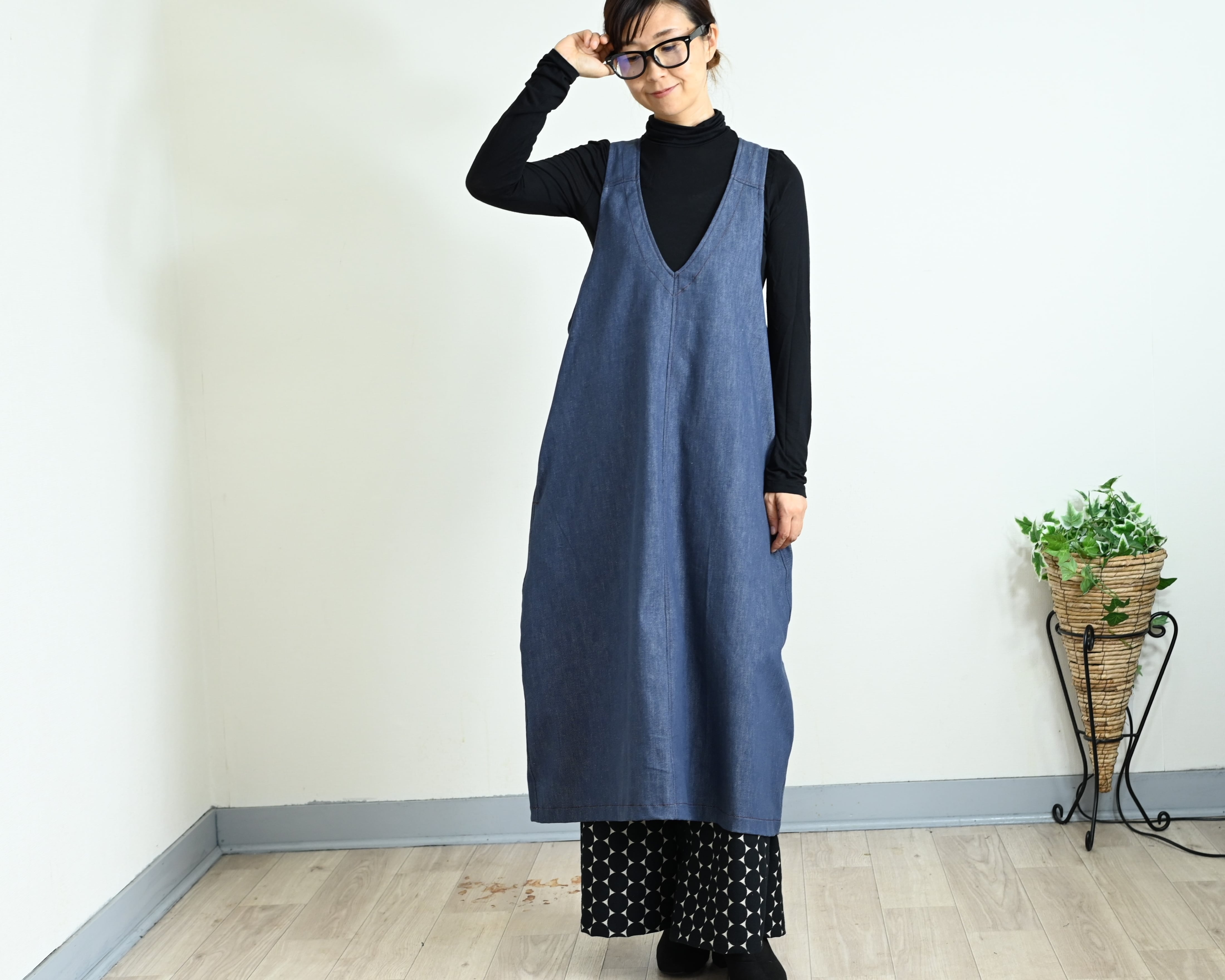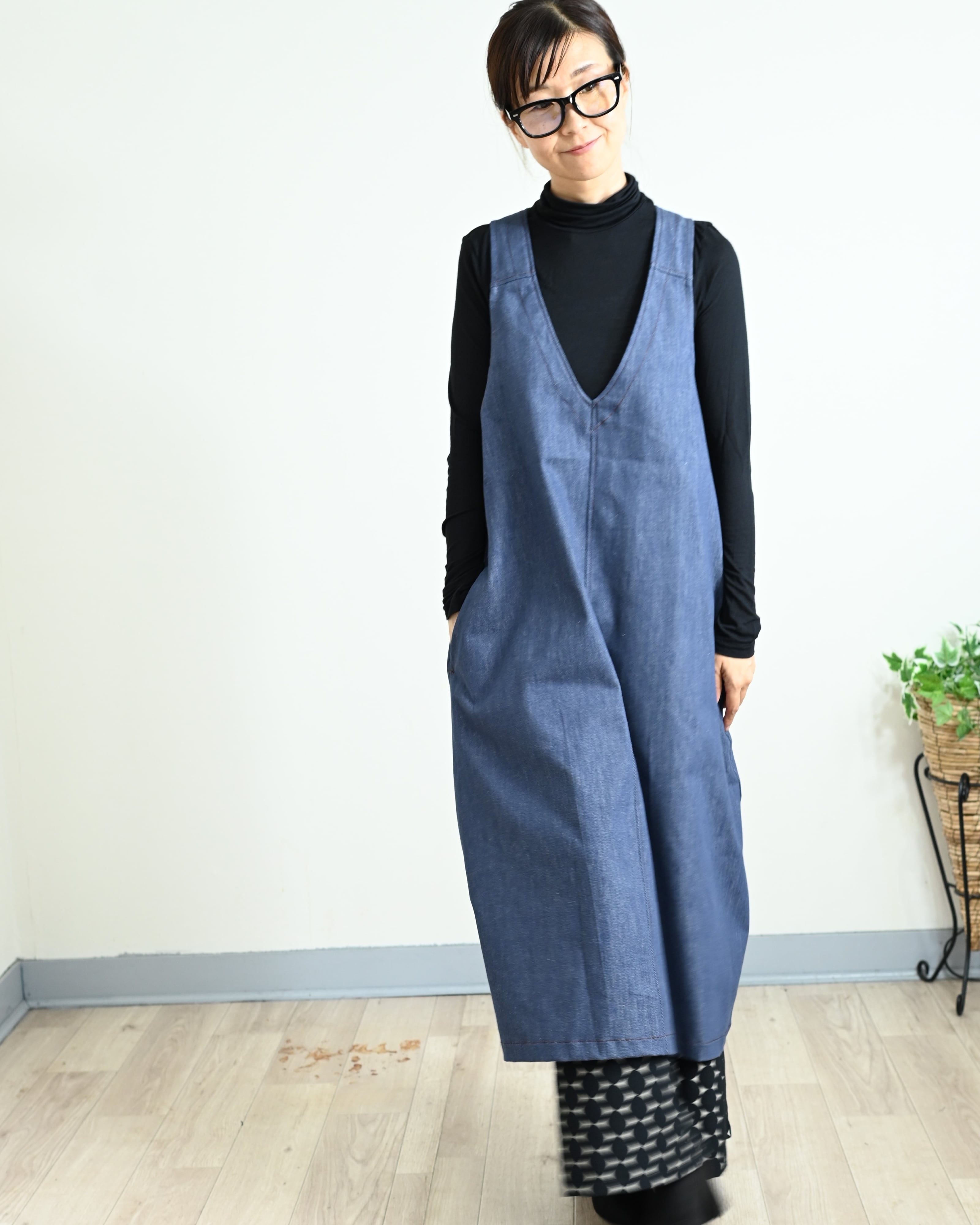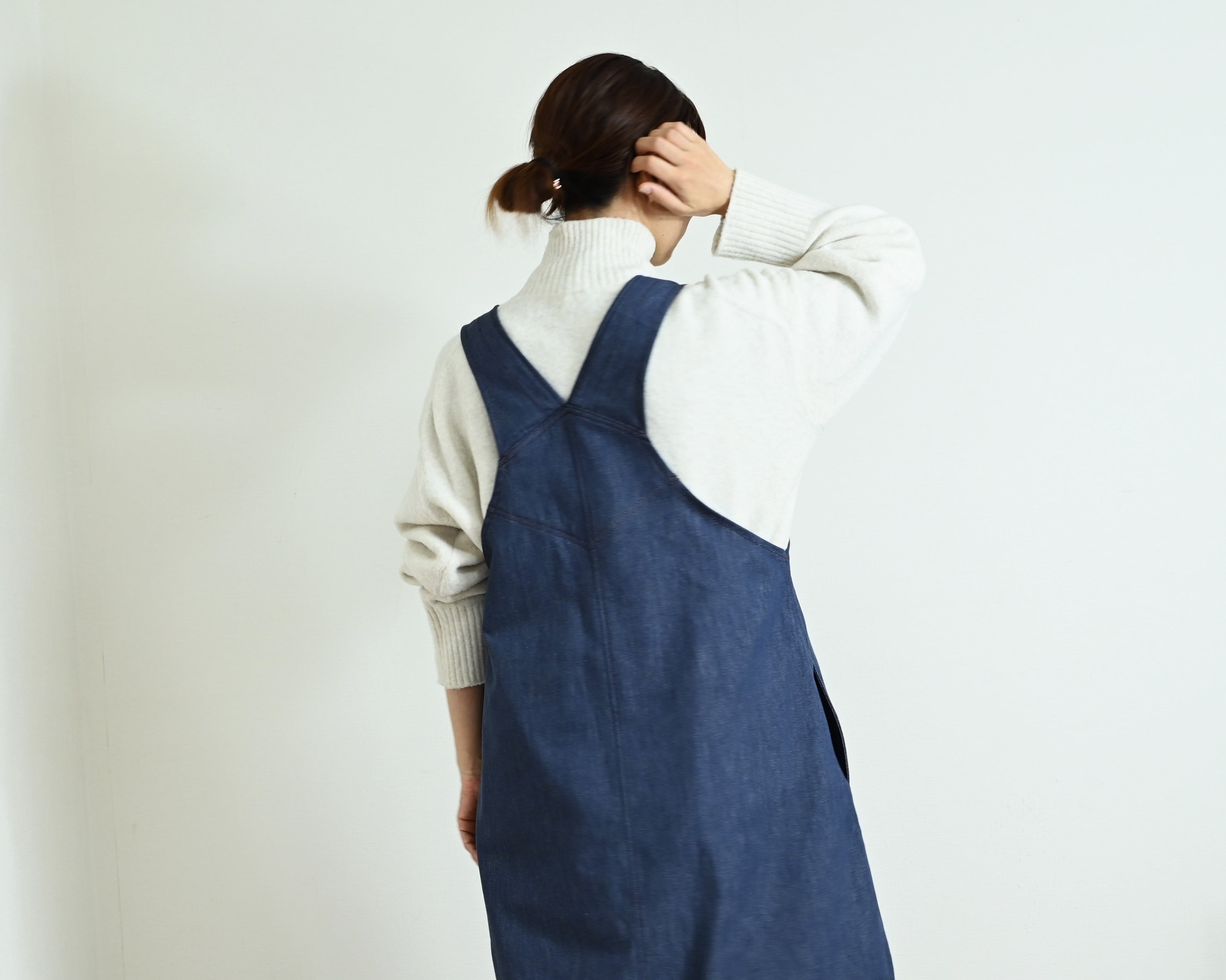ENANAは、軽くてしなやかな8オンスデニムで長くご愛用できるジャンパースカートをお作りしました。