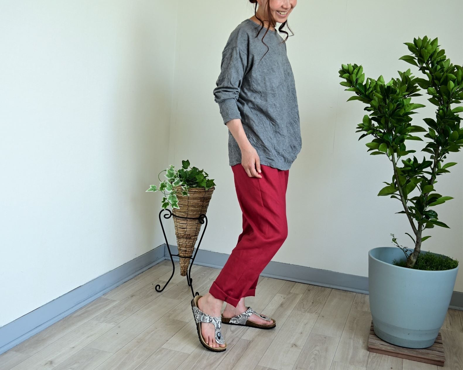 シンプルベーシックなリネンパンツはブラウス、シャツ、Tシャツ、トレーナー、パーカー等々コーディ万能です♪